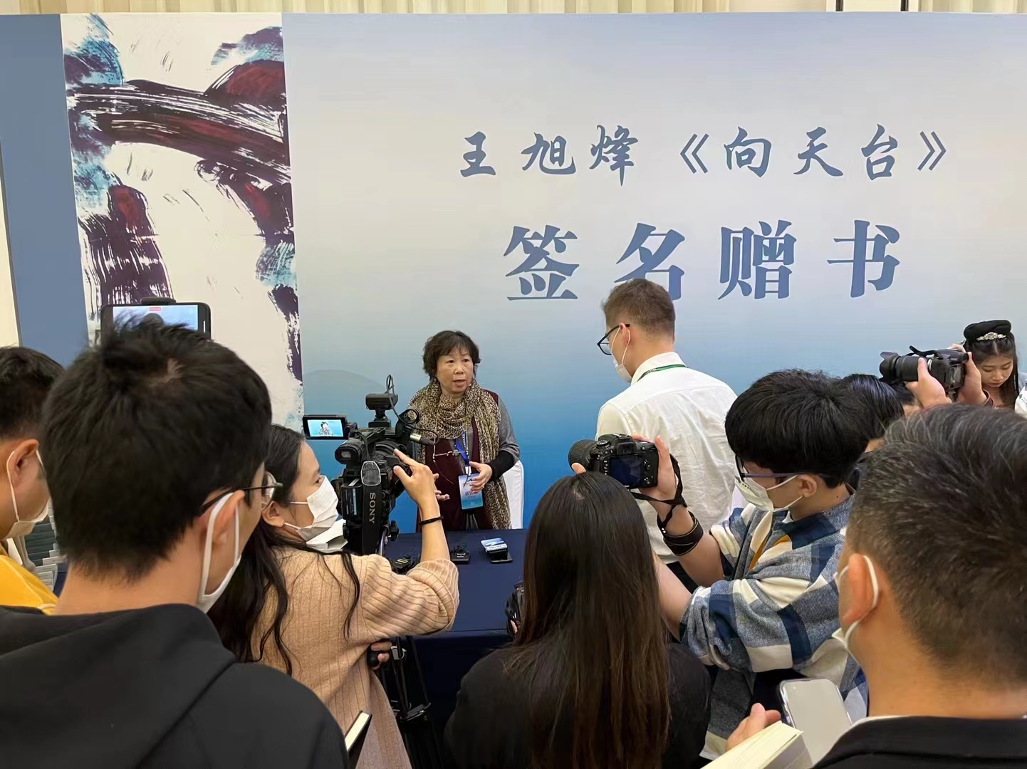 王旭烽现场为大家签赠《向天台》。《向天台》一书站在李白、徐霞客曾经涉足的天台山路上,回望千年历史、走读百年画卷,立根和合文化,讲述了天台山丰厚的历史故事和卓越人物,呈现了天台山的神秀山水和文化基因,字里行间浸透着对天台的衷情向往,文心图意抒发出对天台的无限眷恋,为更多人了解天台、读懂天台打开了新窗口,是一本值得反复阅读、反复品味的好书,是一本值得收藏的文化书籍。
