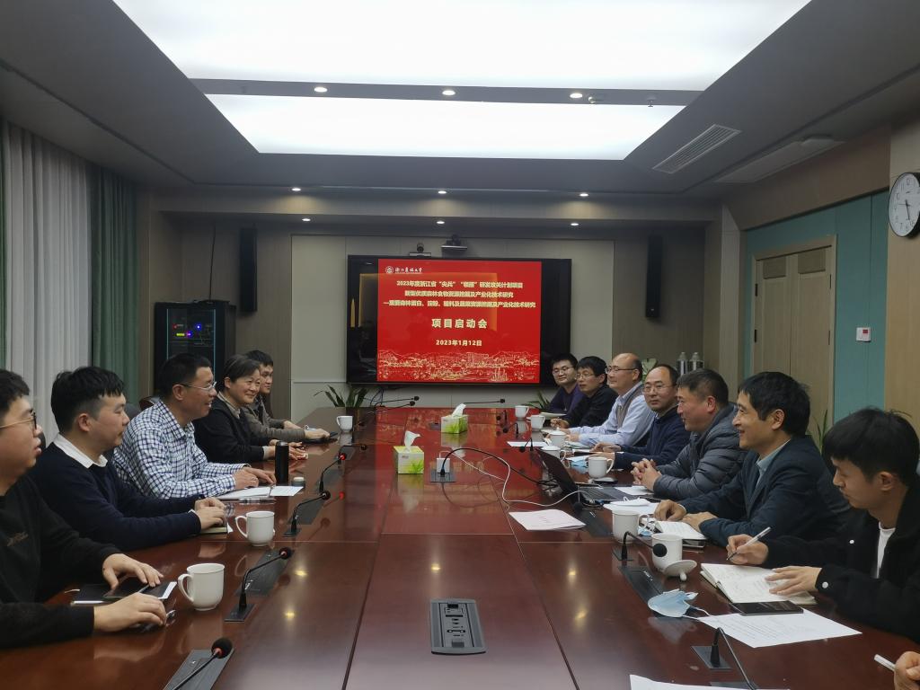 1月12日,2023年度浙江省“领雁”研发攻关计划“新型优质森林食物资源挖掘及产业化技术研究—重要森林蛋白、淀粉、糖料及蔬菜资源挖掘及产业化技术研究”项目启动会在我校召开。