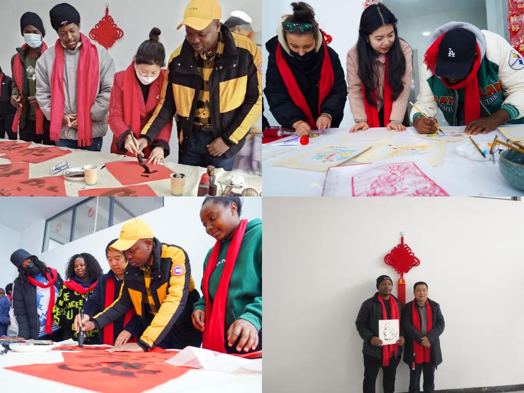 书画导师汪晓亮、夏伟革、叶青、汪起文等与国际学生一起写福字、画年画、贴春联,感受浓浓的中国传统年味。