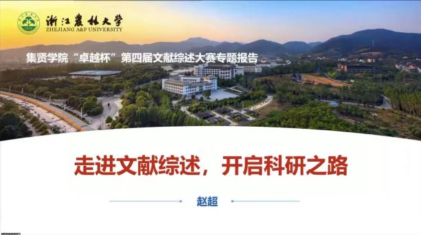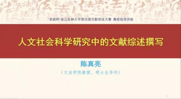 1月16日,集贤学院举办“卓越杯”浙江农林大学第四届文献综述大赛赛前辅导讲座。本次讲座邀请到学校陈真亮、赵超两位专家,分别围绕人文社科类和农林理工类学生如何进行文献综述撰写进行线上专题辅导。