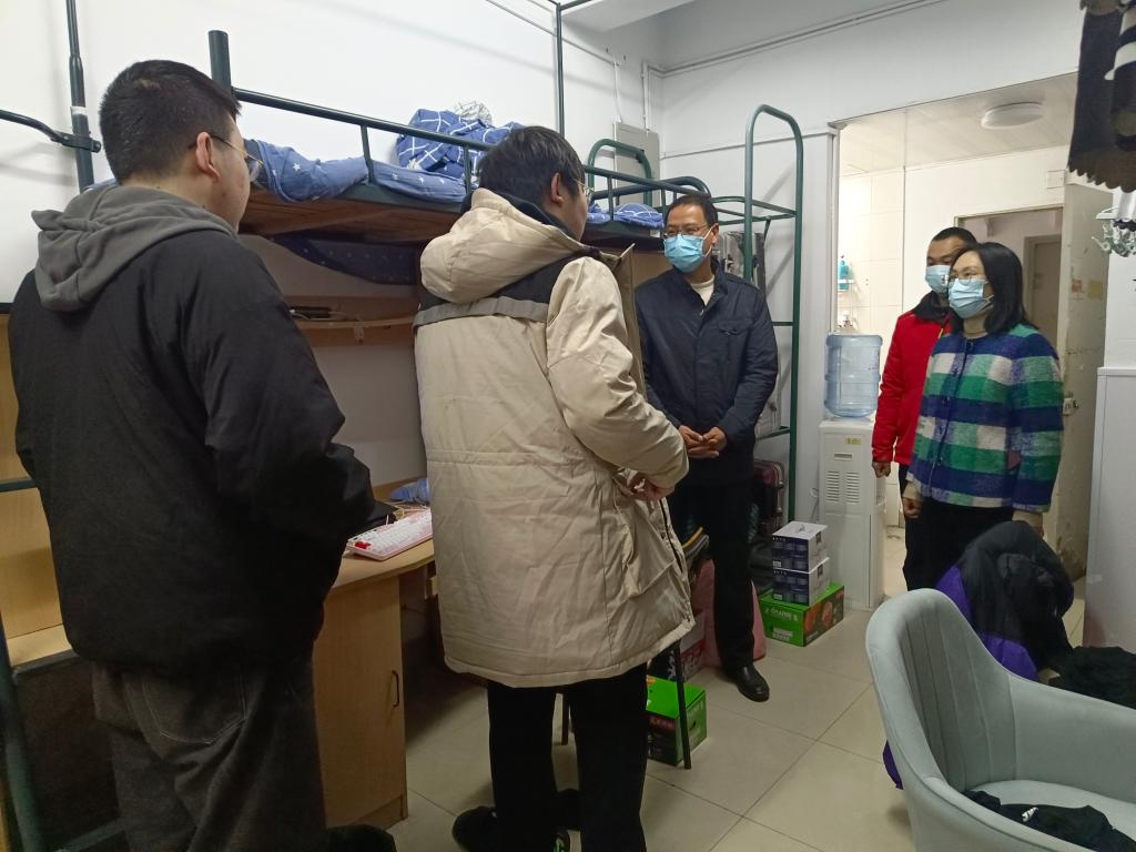 学院领导一行为留校学生送上了学院特别准备的春节慰问礼包并与同学们亲切交谈,关心他们目前的学习生活状况,鼓励大家把握好寒假留校时间。此外,还建议同学们新春佳节多与家人联系,切实做好日常防护,做自身安全健康的第一责任人,同时提醒同学们遇到困难及时与辅导员联系,学院一定会全力为大家排忧解难。