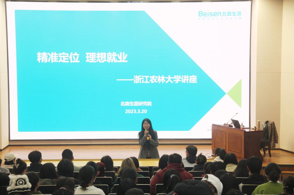 赵丹盟老师分享了自己的人生经历,从职业兴趣、职业认同状态和人职匹配度等方面展开,分别从“职位”“行业”“组织”三个职业要素给同学们分析了职业定位模型,并根据霍兰德职业兴趣分类引导同学们去挖掘自己的性格特点和能力特点,建议同学们找准自己的职业定位。