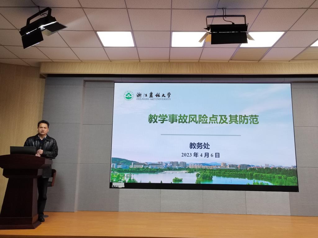 培训会上,郭建忠从新时代对教师的要求出发,要求各位老师自觉践行习近平总书记对教师提出的新要求,做好新时代“四有”好老师、成为“四个”引路人、做到“四个”相统一。随后,他围绕教学纪律、教学事故、典型案例、防范点与举措等方面进行了详细阐述,并依据《浙江农林大学教学事故认定及处理办法(修订)》文件相关精神,对教学事故的分类、表现、认定和处理做了详细的解读;强调了日常教学工作中的主要防范点和应采取的举措。他表示,老师们要增强教育教学的使命感、责任感,严格按照学校规定,规范教学;同时要加强自身能力培养和水平提升,提高教育教学素养。