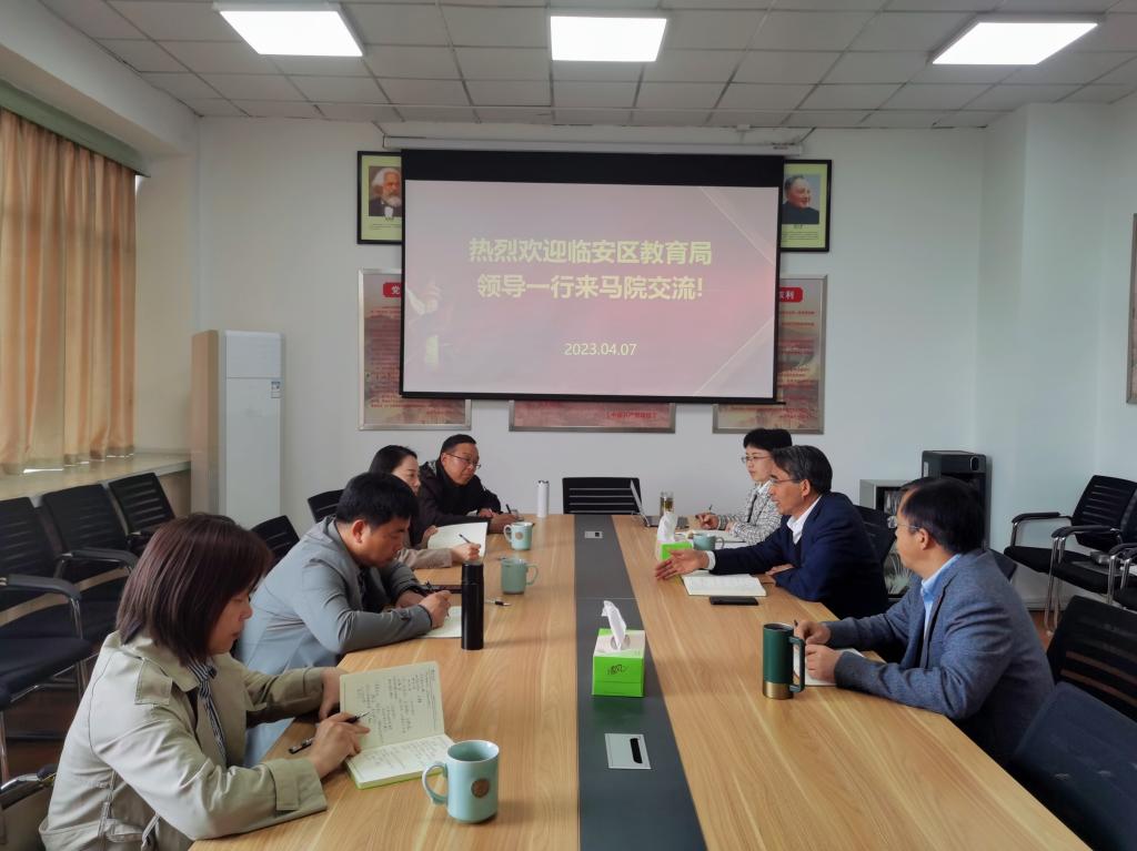 4月7日,临安区教育局副局长方望东带队一行来马克思主义学院就区校合作、大思政建设方面开展了交流,学院院长高君等参加了会议。