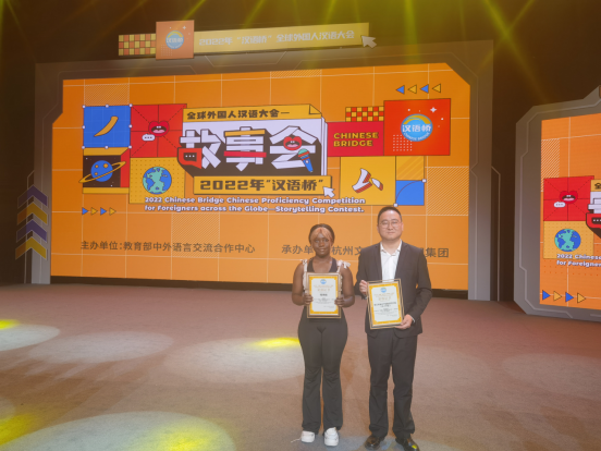 近日,2022年“汉语桥”全球外国人汉语大会——故事会颁奖典礼在杭州举行。我校国际教育学院(孔子学院)荣获“最佳组织奖”,我校选送的喀麦隆籍留学生维纳斯作品获“优秀作品奖”。