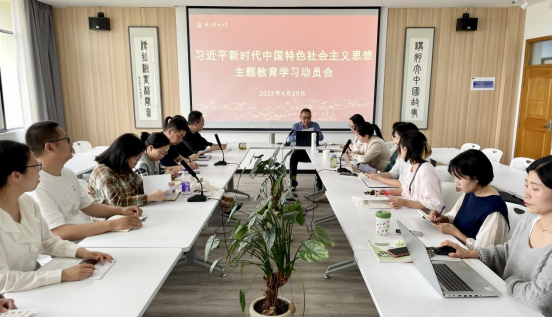 4月20日,国际教育学院(孔子学院)院长、直属党支部书记赵有华主持召开习近平新时代中国特色社会主义思想主题教育学习动员会,全体教职工参加。