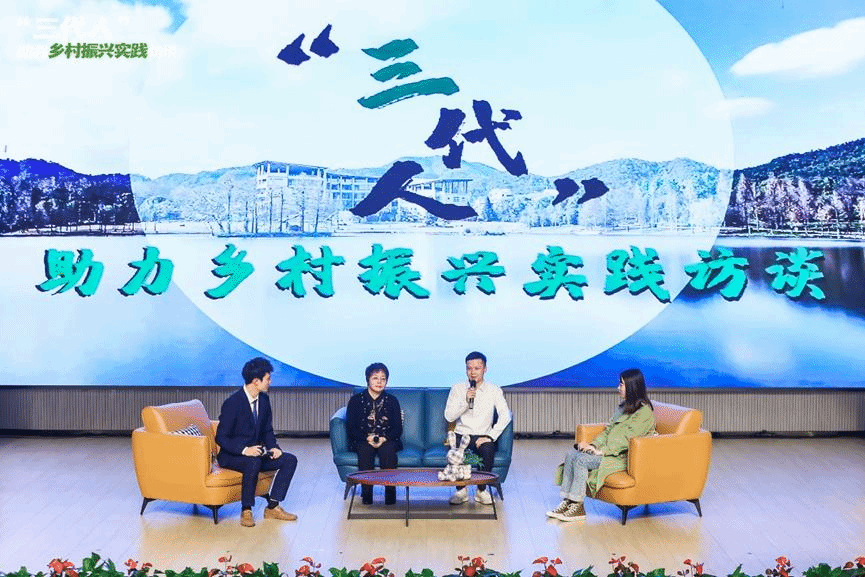 “三代人”助力乡村振兴实践访谈环节,邀请经管学院原林业经济管理省级重点学科方向负责人徐秀英,双枪集团董事兼副总、双枪创意设计有限公司总经理徐洪昌,余杭区农业农村局团委书记康佳宁,分享个人投身于农业农村经济发展的故事和经历感悟,进一步坚定了经管师生投身“三农”事业的情怀与信念。