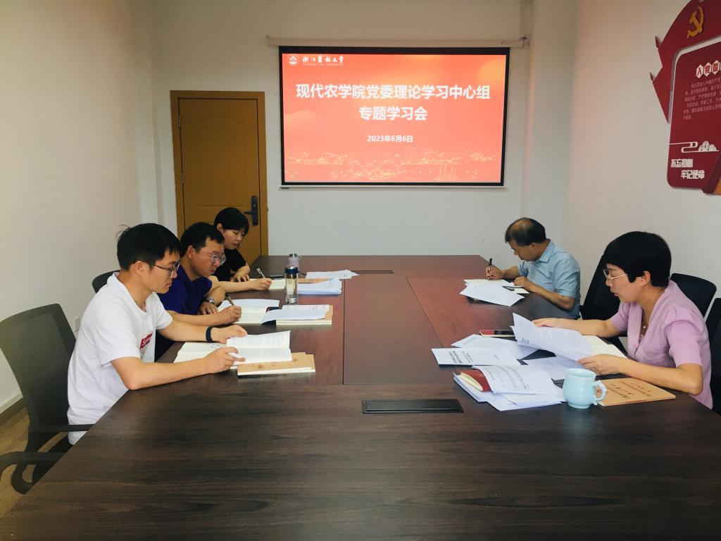6月6日,农学院党委理论中心组举行主题教育学习会,专题学习习近平总书记关于“千万工程”和“浦江经验”的重要批示精神。学院党委理论中心组成员参加学习。