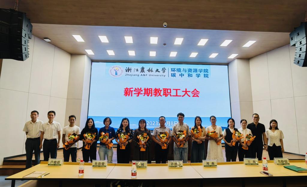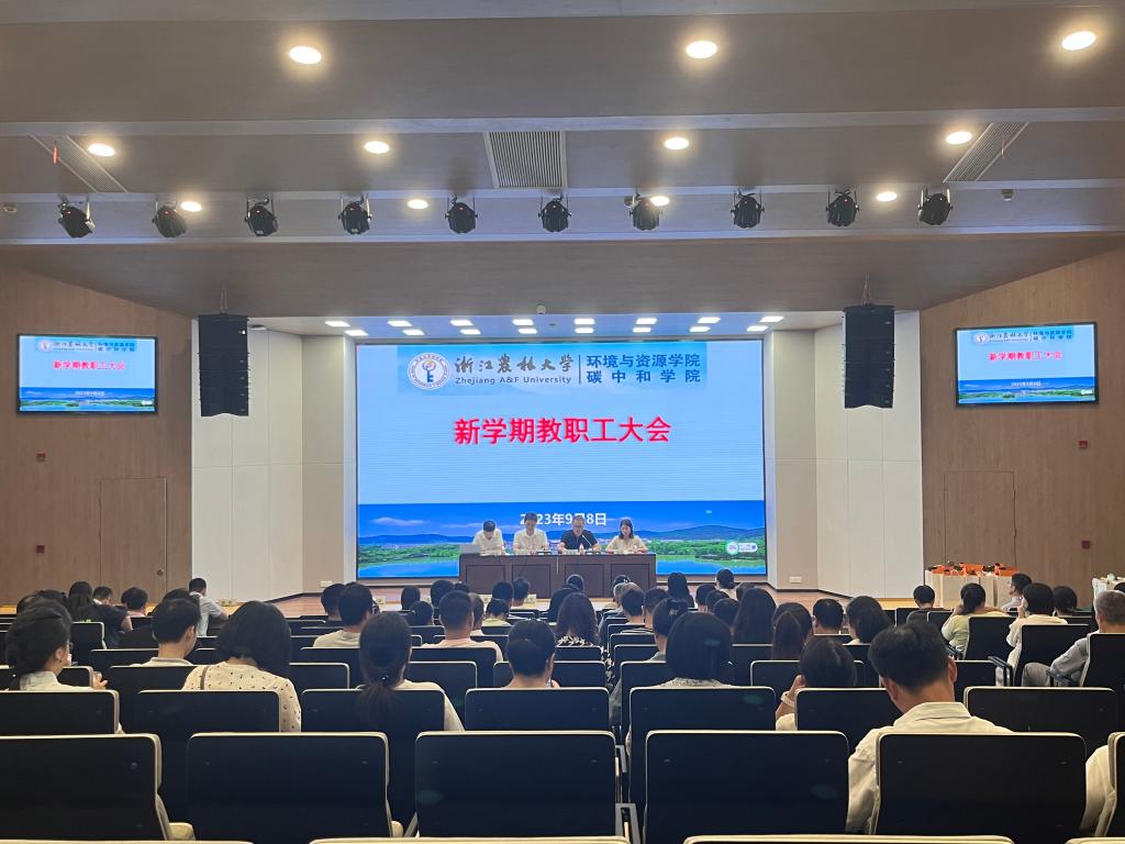 2023年9月8日上午,环资院、碳中和学院新学期全体教职工大会在学3国际报告厅举行,学院党政领导班子成员出席会议,会议由学院党委书记侯锡铭主持,全体教职工参加会议。