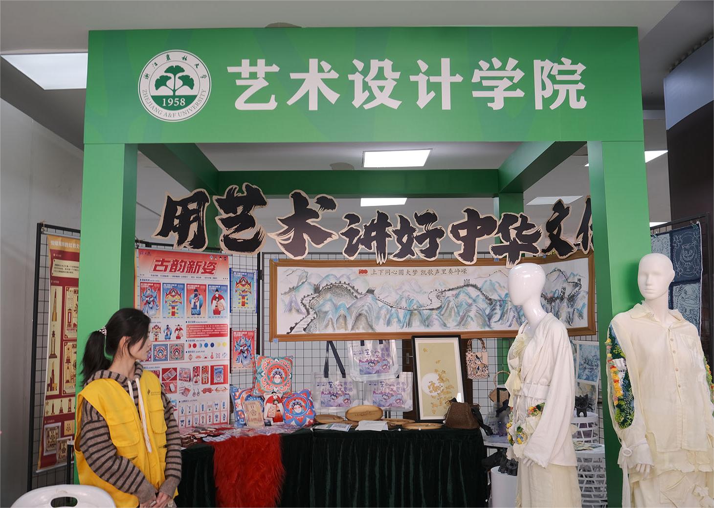 生态主题展围绕“用艺术讲好中华文化”这一主题,集中展示了学院各专业师生的艺术成果:有以红色革命和传统文化豫剧为创作灵感的文创产品、有在云南采风基础上制作的瓦猫和木雕、有用独特的竹染料结合学校景色元素制作的传统服饰、有纯手工制作描绘祖国大好河山的独特拼布等,用独特的艺术手法展示了各项生态文化产品与成果,体现着艺术在传承发扬中华文化中的重要作用。