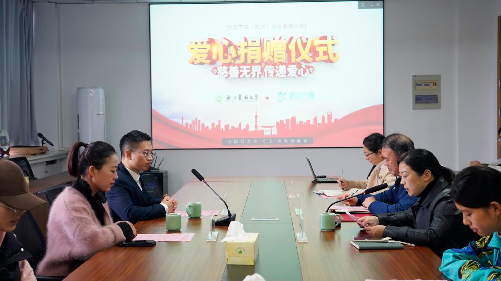 捐赠仪式上,学院领导向捐赠企业表示感谢,同时希望今后能与公司在数智教育、竞赛育人等方面进一步加强合作。捐赠方代表厉军表达了对母校的感恩之情,并希望公司和学院能在产学研、人才培养、实习实践等方面深度合作,为学生提供更多的实习实践机会和更好的平台。仪式最后,时空节拍(杭州)科技有限公司向学校捐赠20万元用于文法学院教育发展项目,学院党委书记朱红东为其颁发捐赠证书,并合影留念。