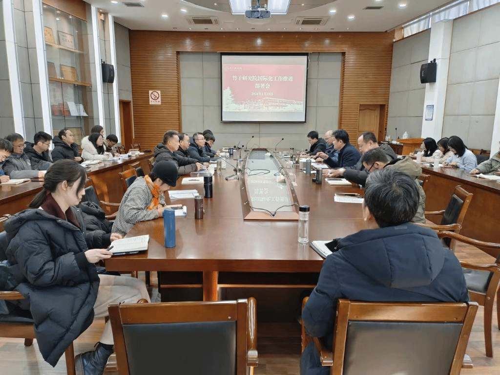 近日,竹子研究院召开国际化工作推进部署会。国教学院(孔子学院)院长赵有华、国际处相关负责人受邀出席,会议由研究院院长宋新章主持,名誉院长方伟、研究院党政领导班子成员、中加竹子研究院中方院长丁兴萃、全体教职员工参加了会议。