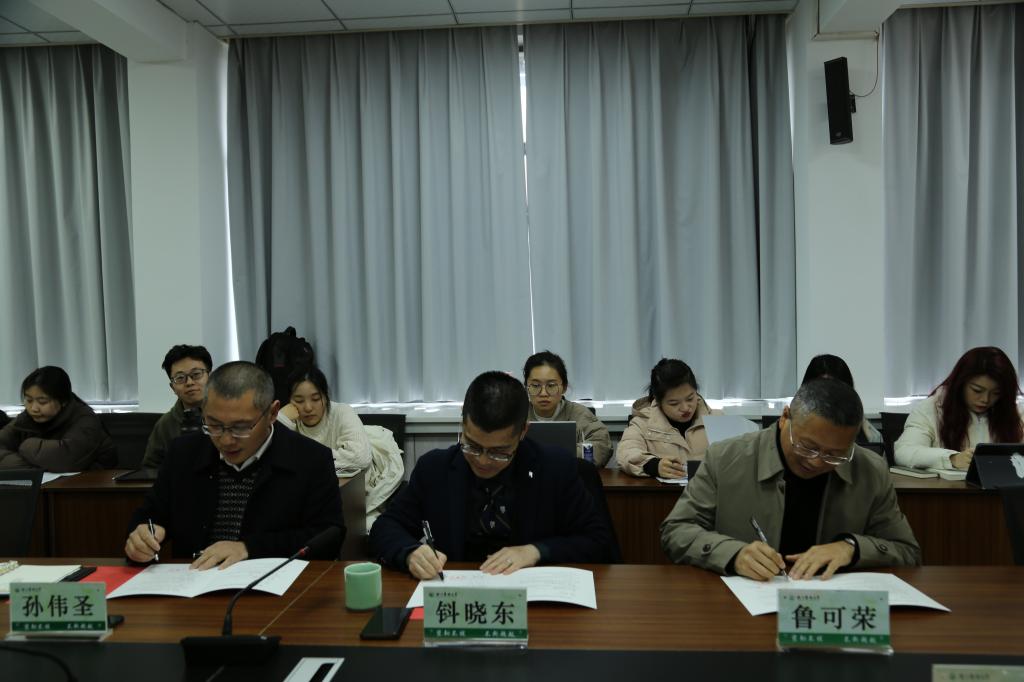 孙伟圣、鲁可荣分别代表学校、学院,与钭晓东教授签订了柔性引进协议书。