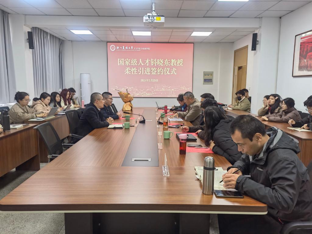 2月29日上午,文法学院与国家级人才钭晓东教授举行柔性引进签约仪式。人才办主任孙伟圣,文法学院院长鲁可荣及师生代表参加签约仪式。