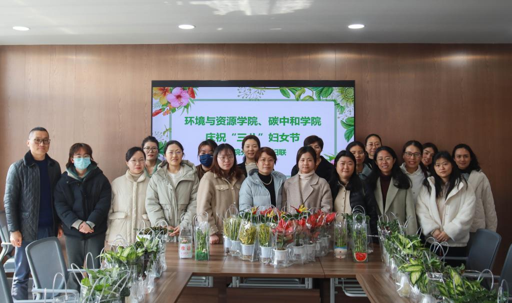3月8日下午,环资院、碳中和学院分工会、妇联组织开展“三八”妇女节活动,为女教师送上诚挚的节日祝福。