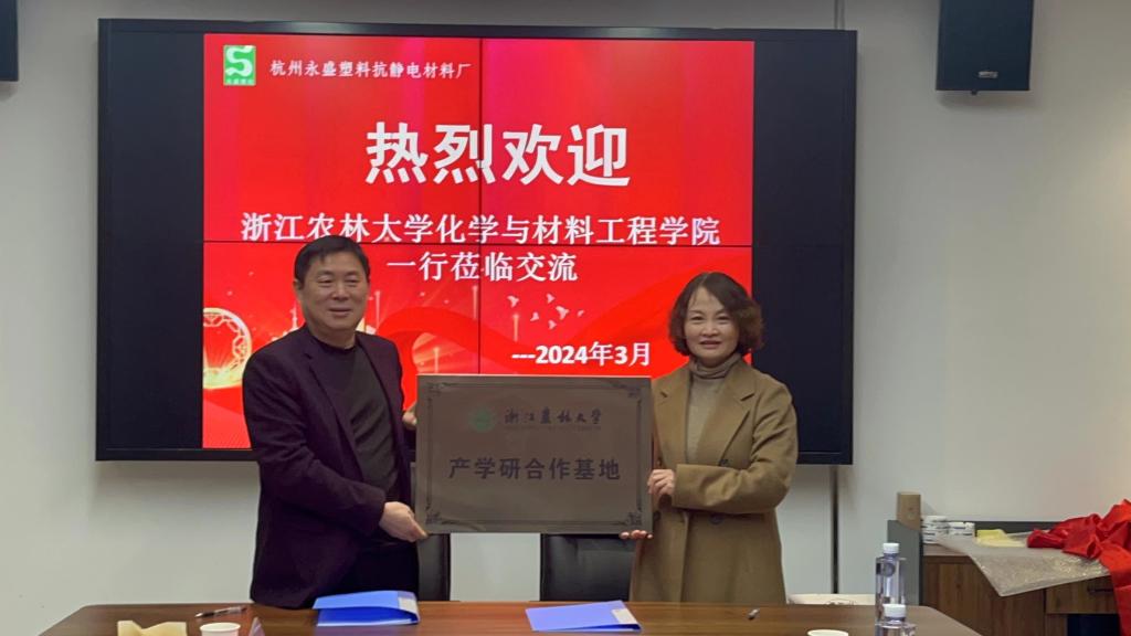 3月13日下午,化材学院与杭州贝盛高分子材料有限公司举办的“产学研合作签约暨基地授牌仪式”在杭州贝盛高分子材料有限公司隆重举行。化材学院党委书记谢志新等相关领导、高分子专业负责人戴进峰及专业老师李倩和肖友华,杭州贝盛高分子材料有限公司董事长章德永、总经理方金华、副总俞露帆、厂长章劲松和外贸经理王新苗等参加了座谈交流会和签约授牌仪式。