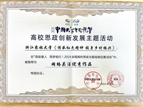 日前,中国大学生电影节“高校思政创新发展主题活动”在福州大学举行。我校报送的短视频作品《传承红色精神 投身乡村振兴》在“思政育人 筑梦前行 | 2024全国高校思政主题视频征集活动”中被推荐为网络关注优秀作品。