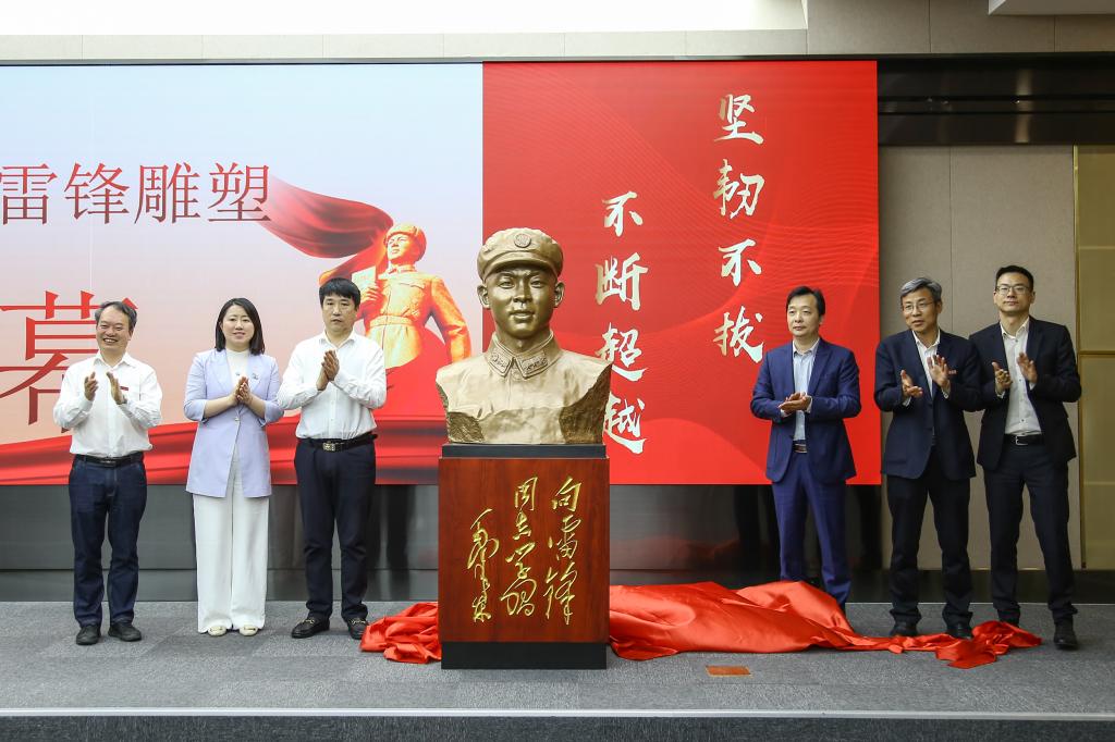 报告会后,杨擎宇向学校捐赠了雷锋雕像,浙江六和律师事务所高级顾问谢春林捐赠了法学图书。倪建均、魏玲玲、郑炳松、朱红东、张永亮与捐赠人杨擎宇共同为雷锋雕塑揭幕。