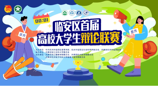 本次辩论赛由中共杭州市临安区委宣传部、杭州市临安区社会科学界联合会、共青团杭州市临安区委主办,共青团浙江农林大学委员会承办,共青团浙江警察学院委员会、共青团杭州医学院委员会、共青团杭州电子科技大学信息工程学院委员会协办。进一步促进了区校合作,密切了在临高校交流互动,充分展现了在临大学生的青春风采。