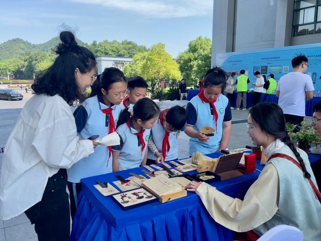 5月15日,由浙江省生态环境厅、杭州市生态环境局、浙江省科普联合会主办的“绿色低碳,美丽中国”2024浙江省低碳日科普活动在浙江科技大学举行。我校新绿地土壤协会、竹木文创设计与制作协会作为杭州高校绿色联盟成员参加低碳浙里行碳标签实物展。