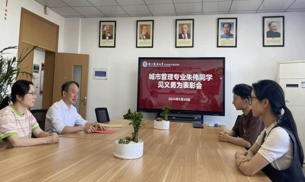 5月28日上午,文法学院在实验大楼612会议室,召开城市管理专业朱伟同学见义勇为表彰会,学院党委书记朱红东等出席会议。