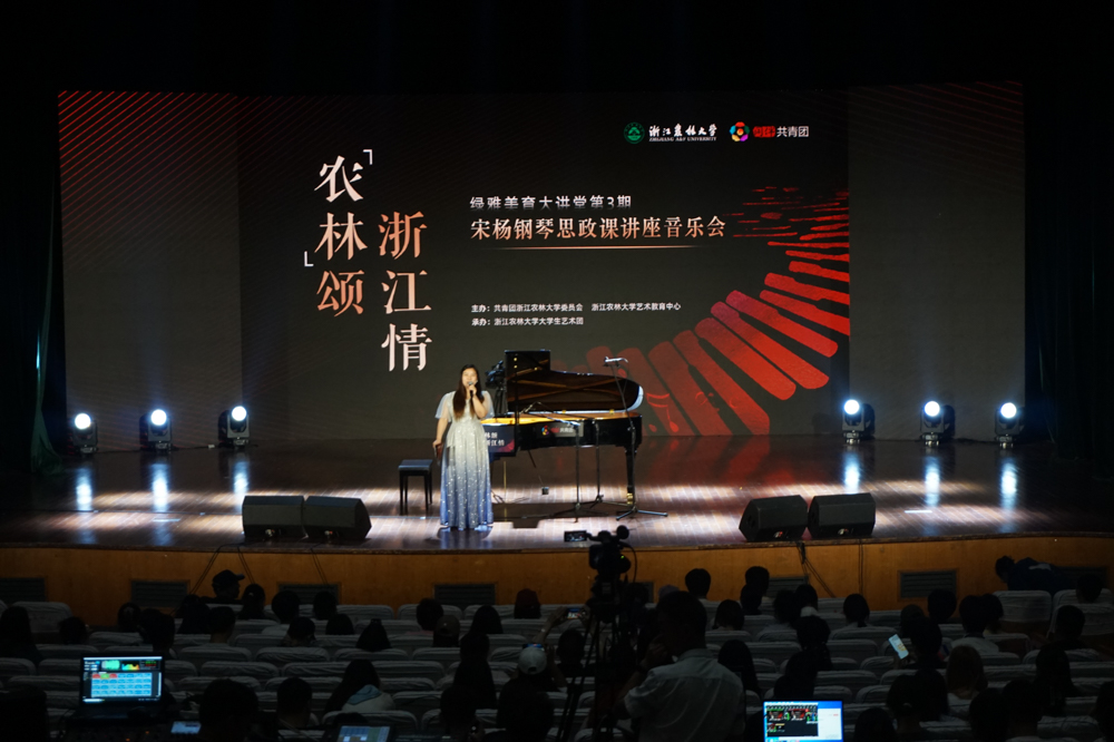 音乐会上,宋杨先后演奏了《浙江农林欢乐颂》《农林颂歌》《心如故》《信仰的颜色》《压在箱底的思念》《盼归》《最美的情书》《百年好合》《我爱你中国》《黄河钢琴协奏曲》《我和我的祖国》等曲目,在黑白琴键上展开钢琴思政课专题讲座音乐会。现场师生在琴声中感悟艺术之美,学习厚重隽永的爱国主义教育课,在极具家国情怀和民族特色的优秀作品中感受着高雅艺术带来的情感共鸣和精神滋养。