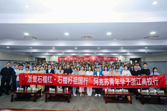 6月6日,“浙里石榴红·石榴籽祖国行”阿克苏地区青年学子赴浙江省高校交流活动——浙江农林大学站在东湖校区举行。共青团浙江省委统战部副部长傅珺,阿克苏地区团委书记张芳,阿克苏教育学院党委委员、副院长宋军华出席活动。阿克苏教育学院、阿克苏工业职业技术学院、阿克苏地区中等职业技术学校的60余名师生代表,浙江农林大学师生代表参加活动。浙江农林大学团委书记魏玲玲主持活动。