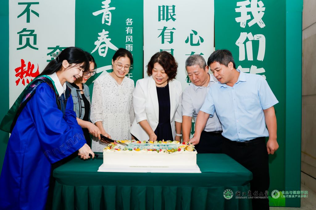 食健学院还精心为毕业生准备了以“拾光·饯行”为主题的感恩话别活动——师生红毯秀和毕业冷餐会。学院党政班子成员与毕业生代表共同切下“拾光·饯行”主题蛋糕,共话师生情、再叙同窗谊,象征着师生约定不言再见的“浙农林食健之约”。愿全体毕业生带着母院的诚挚祝福和师长们的谆谆教诲,牢记初心,砥砺前行,不负时代,不负韶华,成就更加卓越的自我。