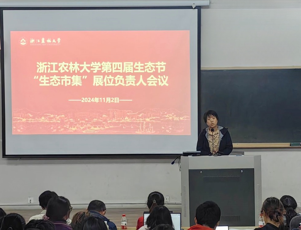 11月2日,浙江农林大学第四届生态节“生态市集”展位负责人会议在教2-111召开。校党委宣传部、教工部部长晋杜娟出席并讲话,各职能部门负责人、学院负责人、展位负责人等180余人参与本次会议。