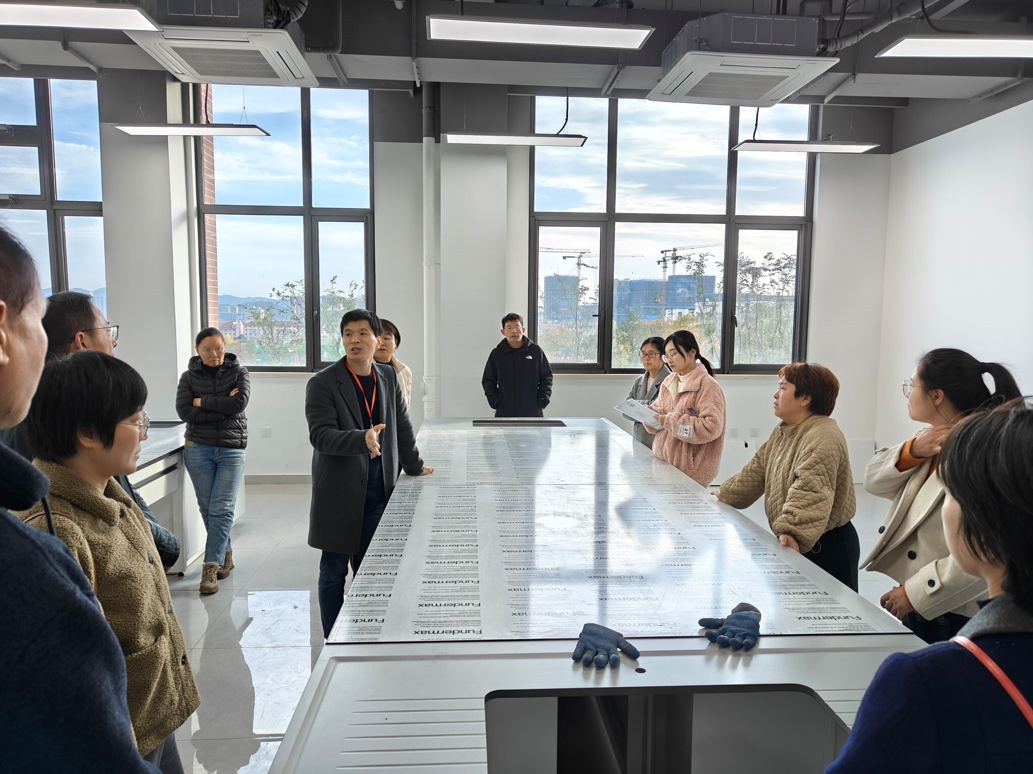 全体参与人员对已入场家具的规格、功能、安全性、环保性能以及与大楼环境的协调性等方面进行了全面细致的核查,详细询问了家具生产进度和进场计划,并要求供应商严格按照规定的时间节点完成家具安装调试等工作。同时,一行人还对实验家具的结构稳定性、材质安全性等方面进行了深入交流和评估。