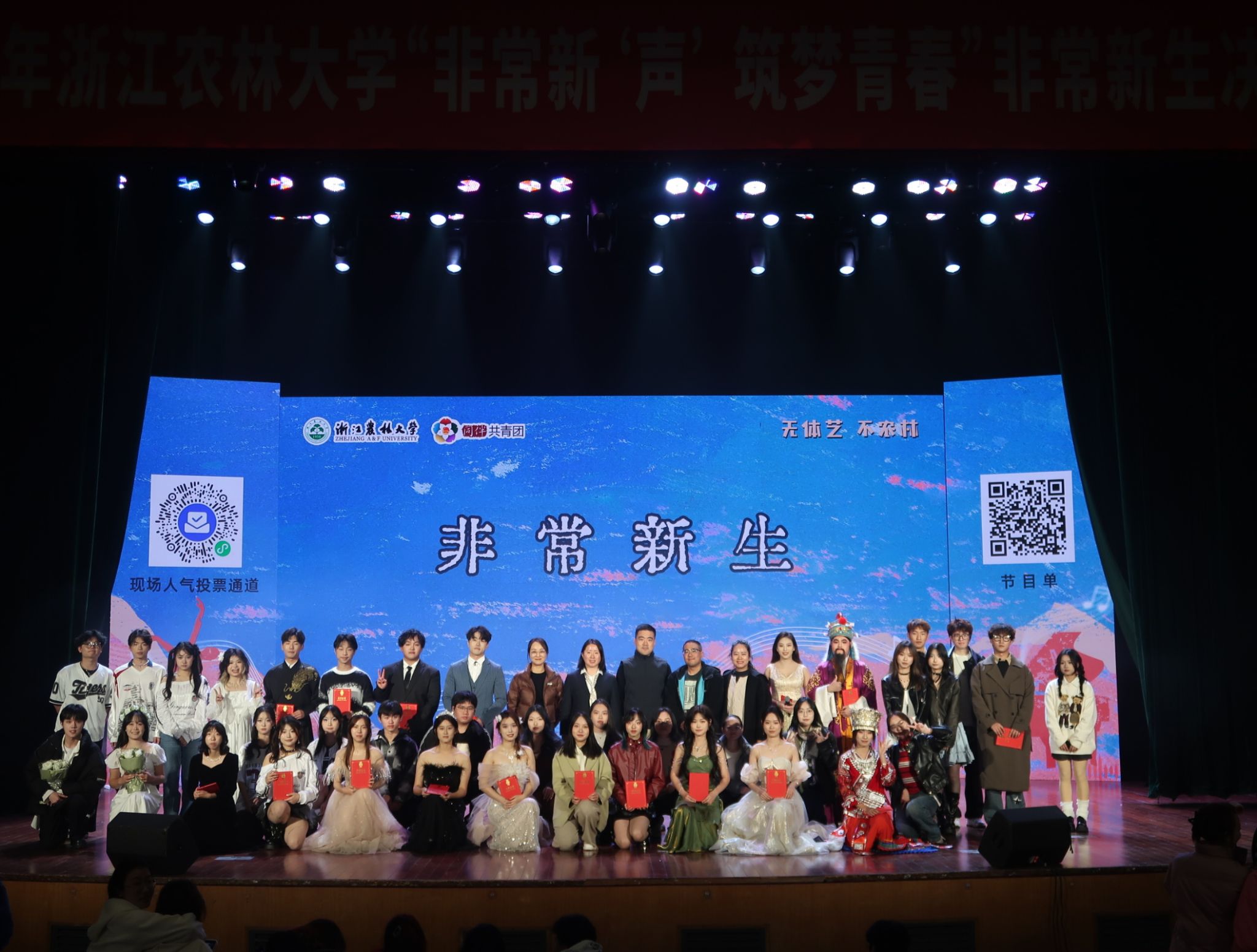 11月30日晚,“非常新‘声’筑梦青春”2024年浙江农林大学“非常新生”总决赛在东湖校区举行。校团委书记魏玲玲,艺术教育中心主任、各二级学院团委书记及浙江大学、浙江大学海宁国际校区、中国美术学院、浙江工业大学、杭州电子科技大学、浙江科技大学、浙江水利水电学院、杭州医学院、杭州电子科技大学信息工程学院的高校学生干部代表出席晚会。千余名师生集中观看了决赛,为选手加油助威。