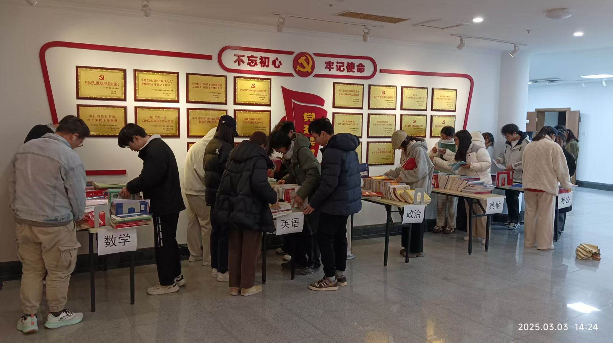 近日,随着新一届学生考研备战季的到来,图书馆新老校区同时启动考研复习用书循环利用活动,旨在将上届考研学生的复习资料传递给本届学生,以此实现知识共享和资源节约,共建绿色书香校园。