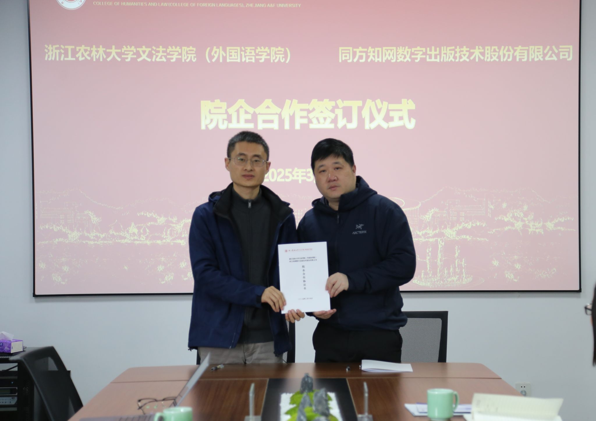 近日,文法学院与同方知网数字出版技术股份有限公司签署合作协议。文法学院副书记徐达,同方知网数字出版技术股份有限公司王晓勇、吴凯出席签约仪式。