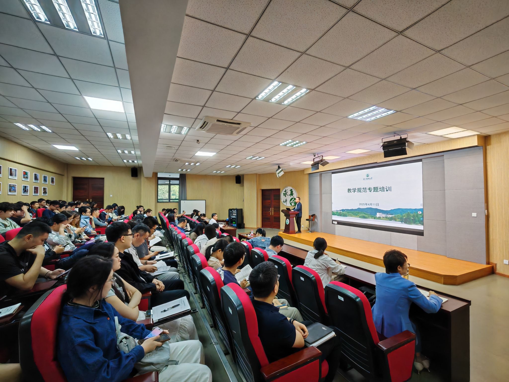 教务处相关负责人从“规范”与“能力”双维度切入,结合青年教师成长需求,针对课程教学、课程考核、监考工作、课程成绩、毕业论文等五个方面详细介绍了教师教学工作规范,系统解读了学校的教学管理规章制度,并就如何通过练就教学基本功、规范教师礼仪、增强课堂互动等举措提升教学能力提出具体建议。