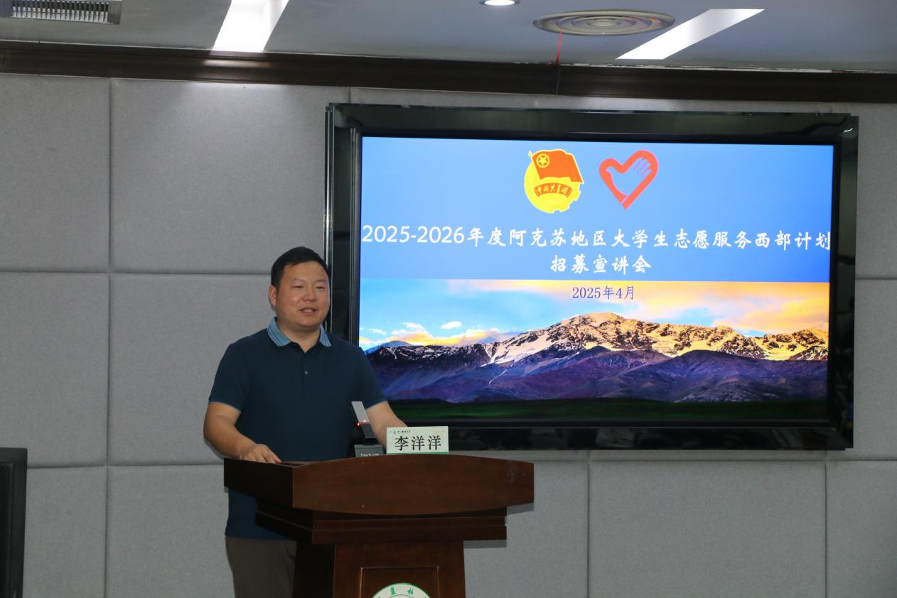 4月16日晚,2025年新疆阿克苏地区西部计划交流会举办。团阿克苏地委西部计划办公室副主任李洋洋、阿克苏西部计划志愿者买克丽娅·艾买江、孙毓卿、杨芷骅、叶洪轩进行宣讲交流。我校200余名同学参与活动。