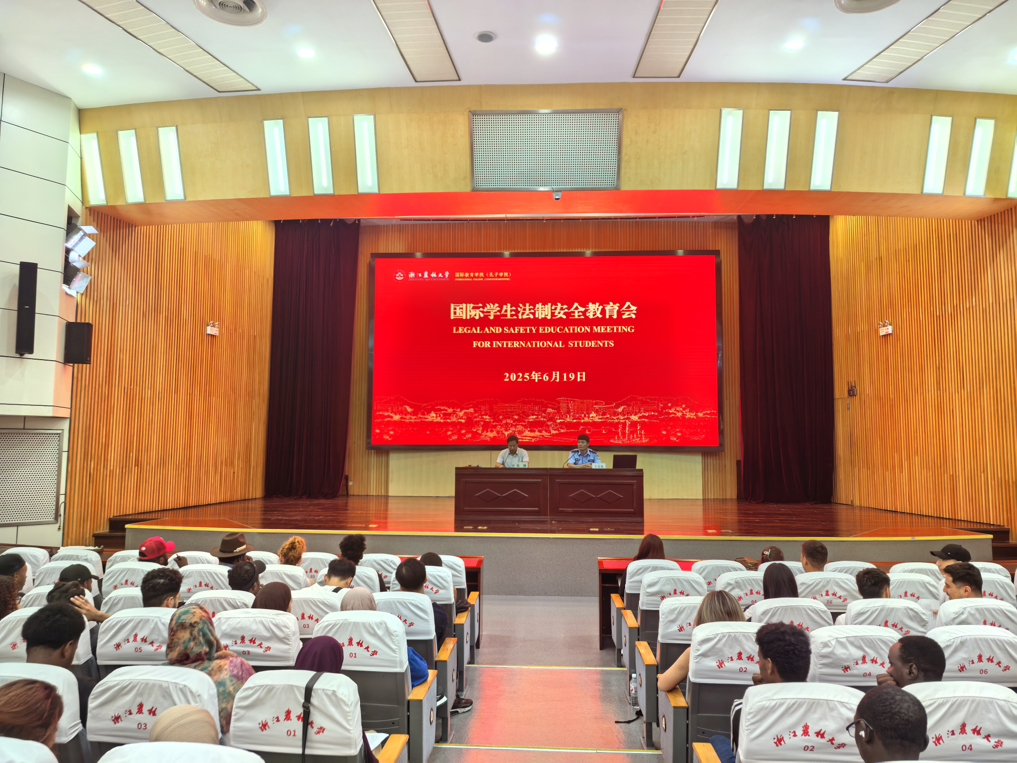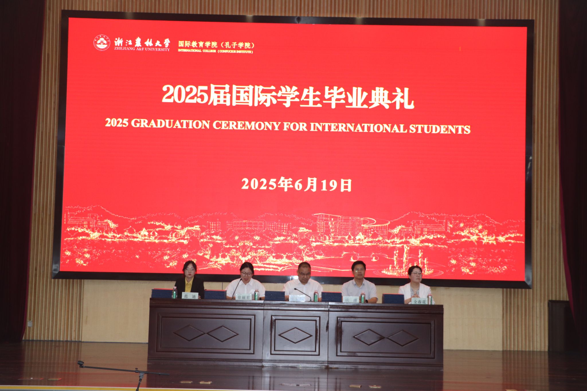 6月19日,浙江农林大学2025届国际学生毕业典礼暨法制安全教育会在图书馆第一报告厅举行。国际教育学院(孔子学院)领导班子成员,全体辅导员、教师和管理人员,全体毕业生参加典礼。