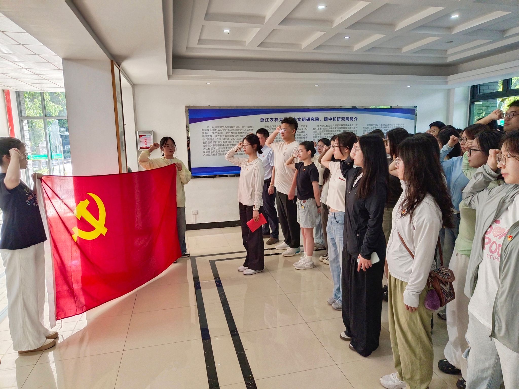 随后,学院举行入党宣誓仪式。新发展党员面向党旗,举起右拳庄严宣誓,其余师生党员一同重温入党誓词。铿锵有力的誓言响彻会场,传递出师生党员对党的忠诚与为共产主义事业奋斗终身的决心。