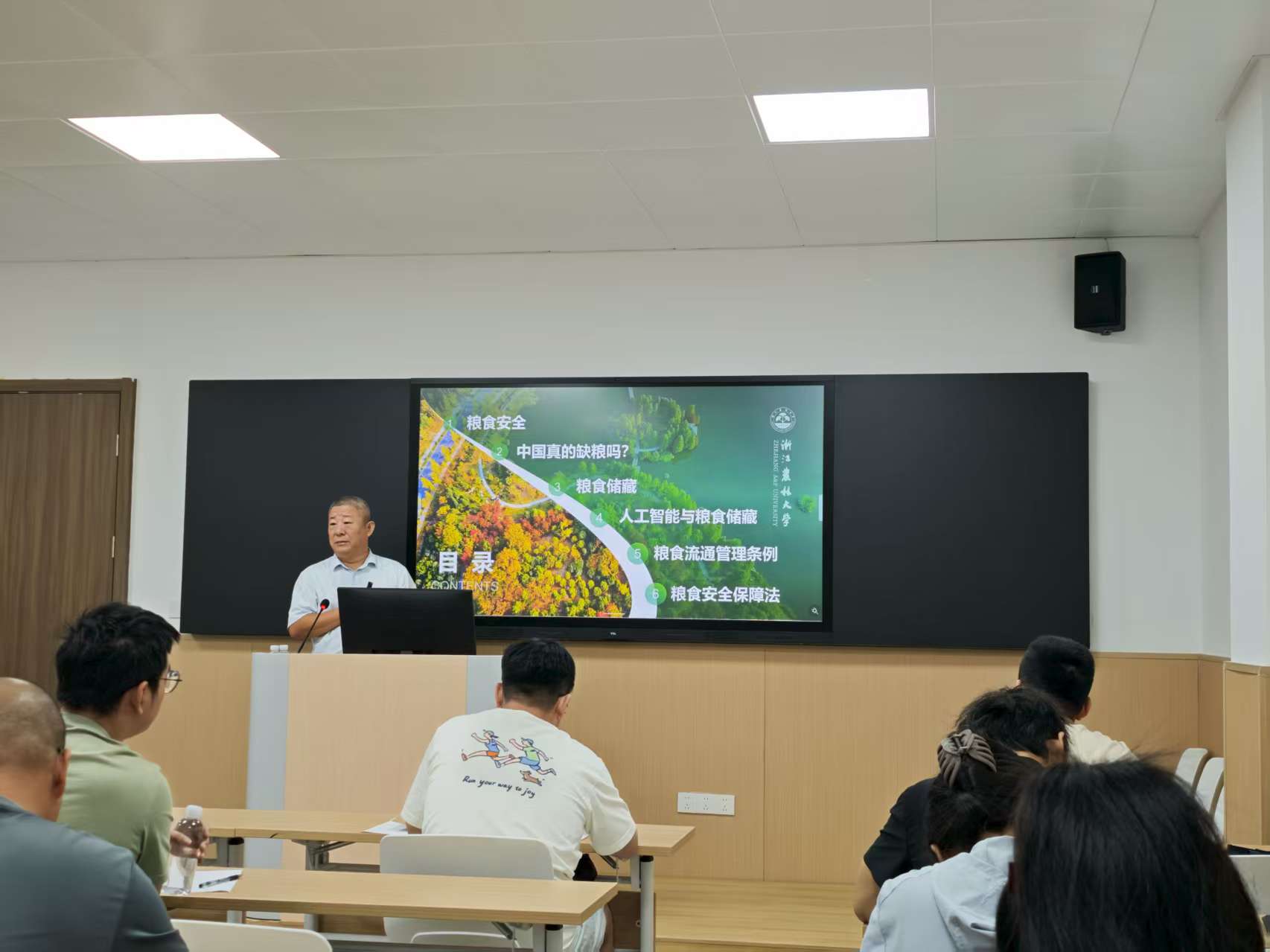 理论教学环节聚焦粮油产业关键技术与政策动态。吴洪恺教授围绕水稻育种与栽培技术展开系统讲解,从品种选育的科学原理到田间管理的实操技巧,内容深入浅出;刘宏波教授以油菜高产栽培为主题,结合典型案例分享了精准施肥、病虫害防治等实用方法;邓建宇教授重点解析水稻绿色防控技术,强调生态调控与科学用药相结合的环保理念;庞林江教授则深入解读最新粮油政策及先进储粮技术,帮助学员把握行业发展方向。