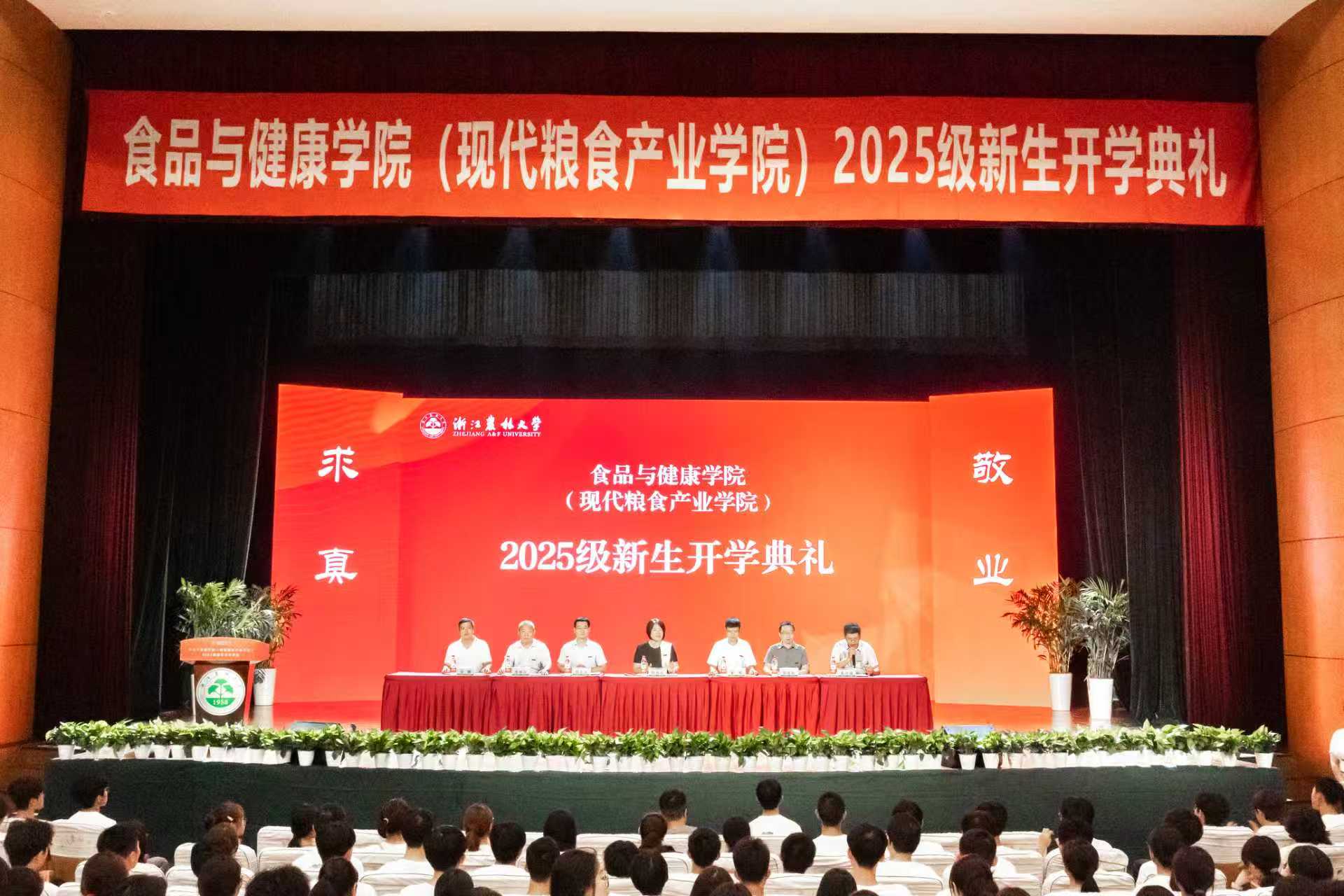 9月16日上午,食品与健康学院(现代粮食产业学院)2025级新生开学典礼在东湖校区影剧院举行。学院党政班子成员、学科专业负责人、研究生教育负责人、专业负责人、新生班主任、辅导员、在校生代表以及2025级全体新生齐聚一堂,共同见证这一重要时刻。