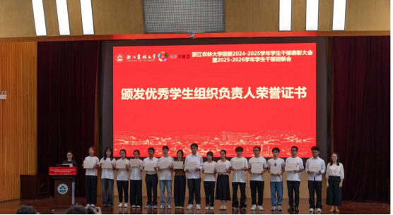 此次大会不仅是对团学干部辛勤付出和工作成绩的总结表彰,更是对新征程的展望动员,充分展现了浙江农林大学团学组织薪火相传、奋楫争先的精神风貌。相信新一届学生组织干部必将继往开来,书写下无愧于时代的青春篇章。