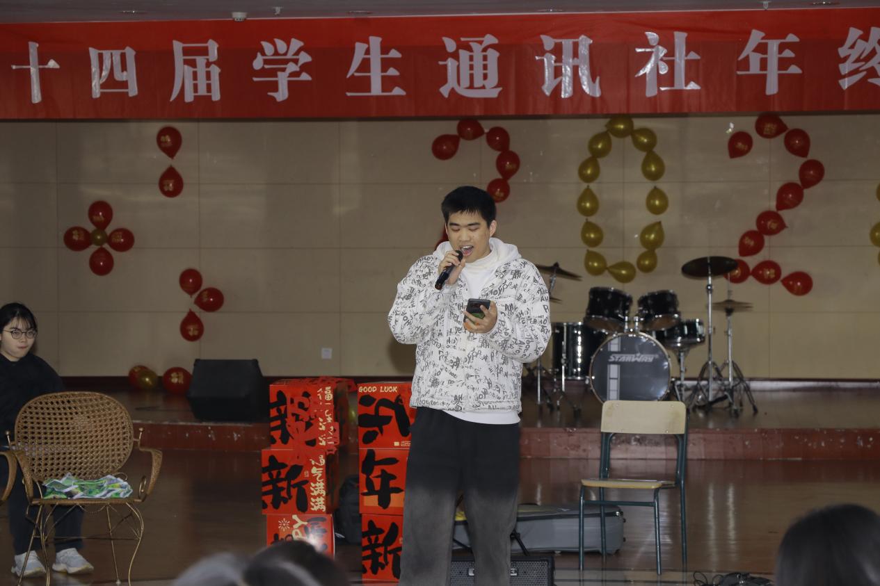 活动开场,通讯社指导老师陈胜伟充分肯定社员过去一年的付出,并寄语未来。社长张可随后回顾年度成果,温情分享赢得现场掌声。