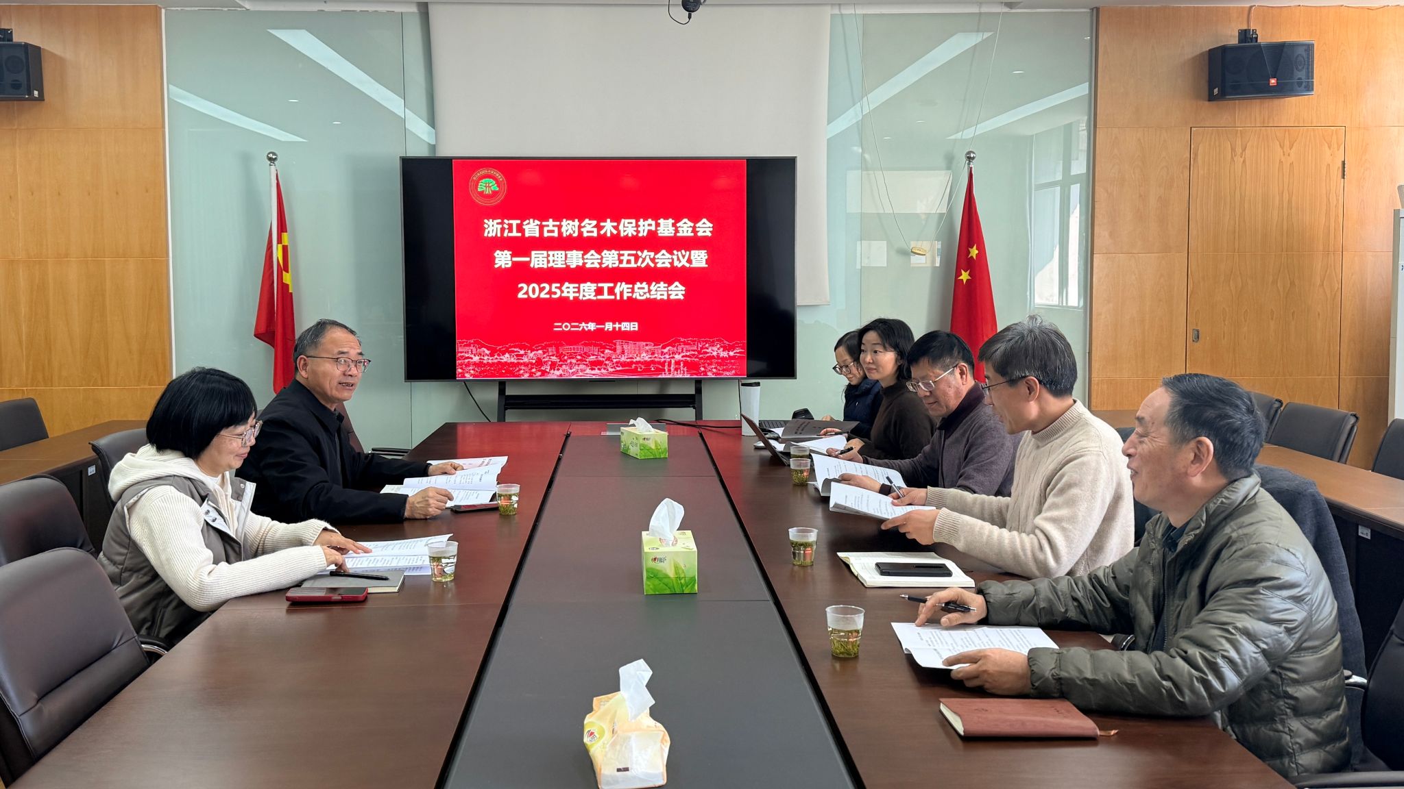 1月14日,浙江省古树名木保护基金会理事会召开一届五次会议暨2025年工作总结会议。会议由秘书长郑炳松主持,全体理事、监事参会。