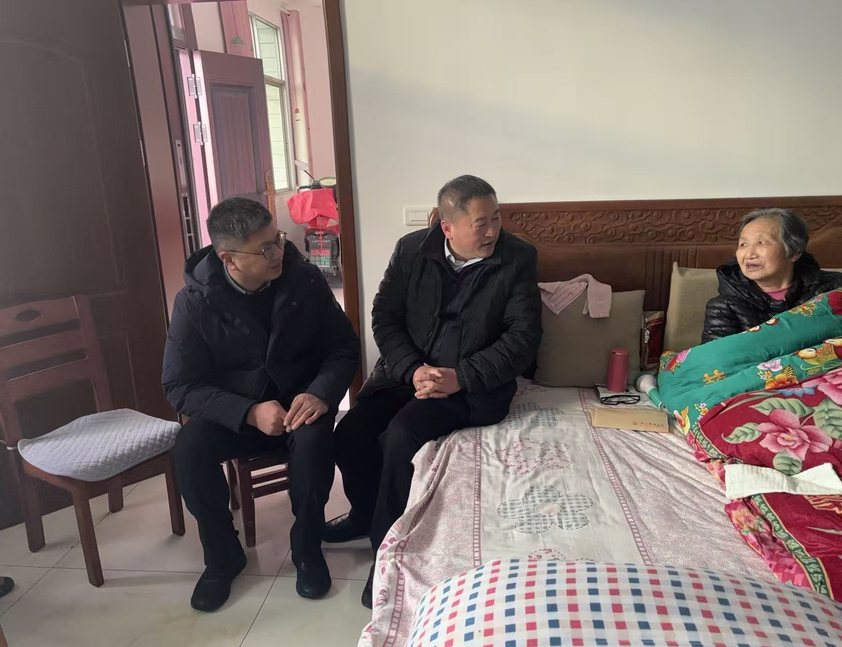 慰问组前往邵志鹏同志墓前敬献鲜花,表达深切缅怀。随后,慰问组向邵志鹏母亲送上慰问金并致以新年问候,并对其和其他亲属的健康、生活及社会保障情况进行细致了解。慰问组还特别关心邵志鹏侄子的学业与就业情况,为其提供了相应指导。