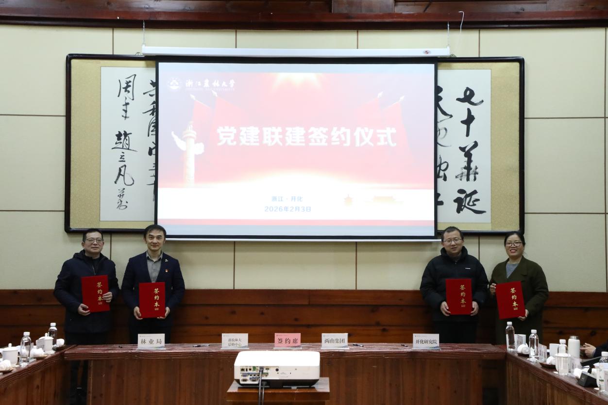 2月3日,后勤中心党委与开化县林业局党委、开化县两山投资集团有限公司党委及开化钱江源生态产业研究院(浙江农林大学开化研究院)共同举行党建联建签约仪式,携手构建“组织共建、发展共谋、成果共享”的党建工作新格局。后勤中心党政领导班子成员、管理二级岗人员,与三家开化县联建单位的党组织负责人、乡镇代表及校友代表共同参会。
