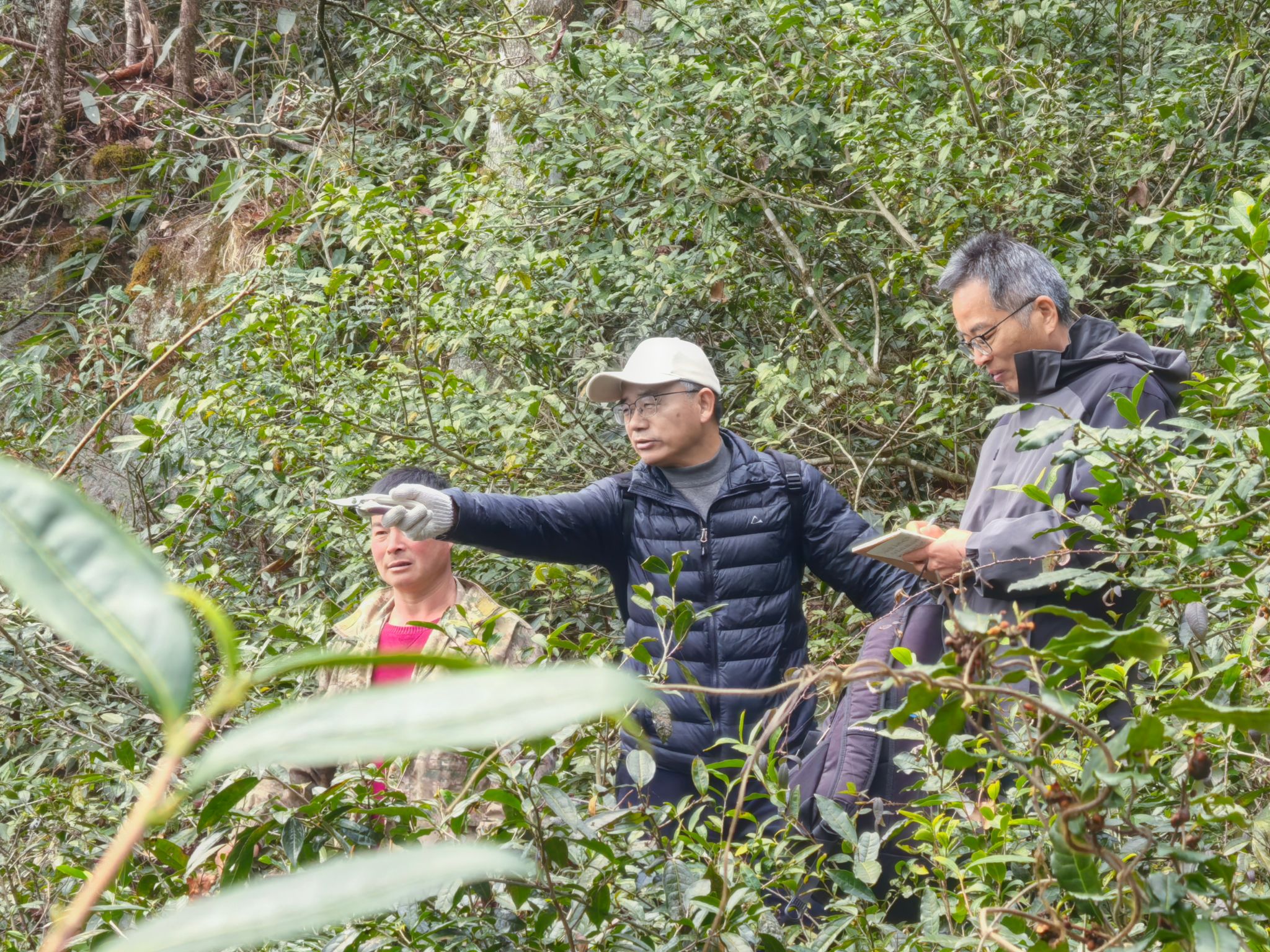 3月4日,浙江农林大学古树名木保护研究院院长胡祖吉率专家团队,联合浙江省茶叶集团股份有限公司、杭州清凉峰茶文旅有限公司、临安区清凉峰镇新峰村村委及当地村民代表,深入清凉峰国家级自然保护区高山区域,实地调研古茶树资源,共同探索古茶树保护与产业协同发展新路径。