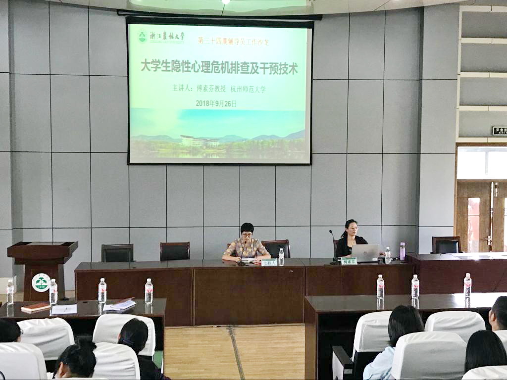 为健全我校心理危机预防和快速反应机制,建立学校、院系、班级、宿舍“四级”预警防控体系,9月26日,学工部以“大学生隐性心理危机排查及干预技术”为主题举办第三十四期辅导员工作沙龙。此次活动专门邀请了杭州师范大学心理系傅素芬教授,各学院学生工作负责人、全体辅导员、班主任代表和后勤公寓管理干部代表参会。