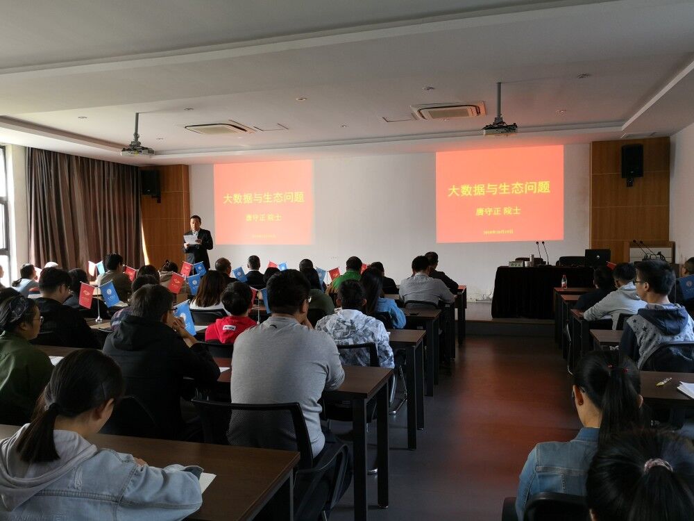 报告会上,唐院士主要介绍了大数据在生态问题中的应用,并以大数据在生物物种方面的应用和大数据在吉林省林分生产潜力的应用等方面介绍了大数据理论技术和实践。唐院士深入浅出地对深奥的知识进行了形象的演绎,为研究生态问题提供了新的思路。唐院士还与师生进行了互动讨论和学术交流。唐院士的精彩报告不仅为大家开拓了新视野,也极大的调动了同学们的科研热情。