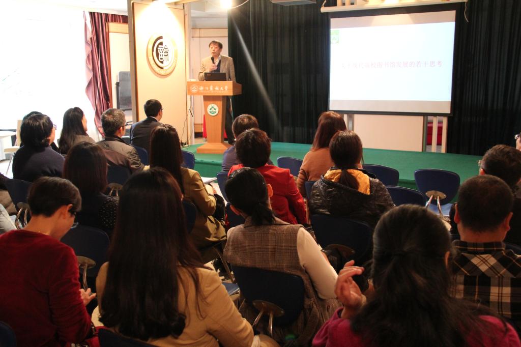 11月5日,在图书馆二楼跨文化服务中心,国务院参事、中国农业大学图书馆馆长何秀荣教授应邀为图书馆教职工作了题为“关于现代高校图书馆发展的若干思考”的精彩报告。报告会由图书馆馆长徐光辉教授主持,全体教职工聆听了报告。