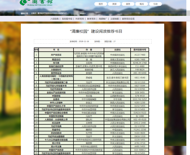 图书馆根据中纪委网站等提供的资源进行收集整理,与校纪委办联合推出了“清廉校园”建设阅读推荐书目91种,并在二楼大厅专门设置了“清廉校园”建设书目展架及展台。同时,通过微信公众号、《林图资讯》馆刊、QQ群等媒体线上线下结合推广,取得了较好成效。