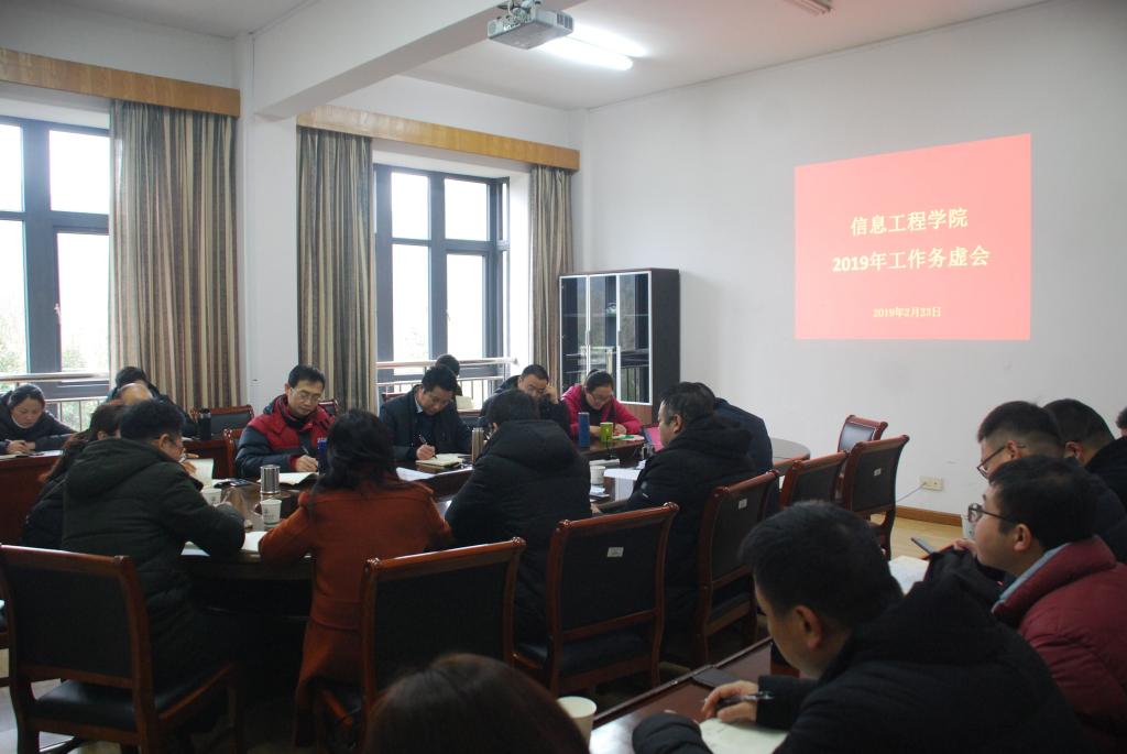 2月23日,信息工程学院召开2019年工作务虚会,主要围绕学院长远发展规划,谋思路谈举措。学院党委书记冯金明主持会议。